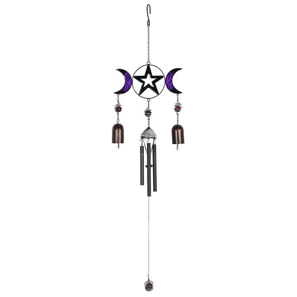 This stunning glass, metal and resin windchime features a lovely triple moon design in black and purple. Hang in a sunny spot to catch the breeze and allow the sunlight to shine through.